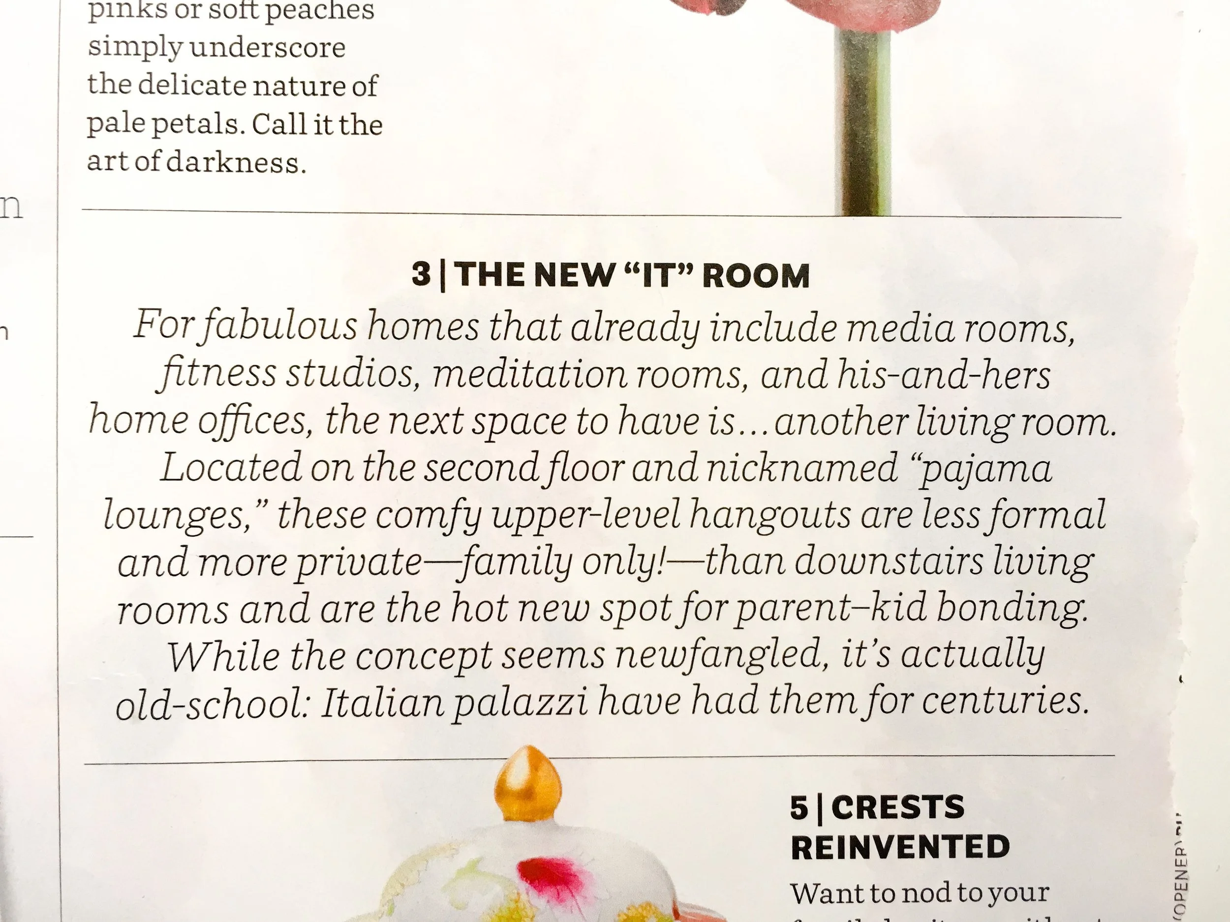 You all know that pink is still flying high as color of the moment. Or maybe you think orange is the new pink. But did you know that pajama lounges are the new “it” room? This little blurb in the current issue of House Beautiful caught my full attention last week: